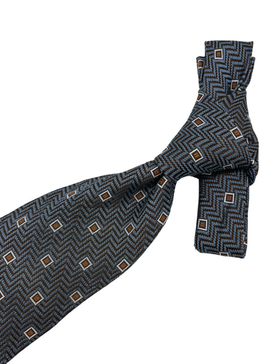 Ermenegildo Zegna Grey & Brick Paisley & Herringbone Pattern Silk Tie