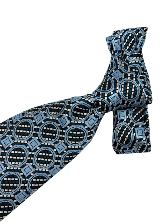 Ermenegildo Zegna Teal & Light Blue Abstract Pattern Silk Tie