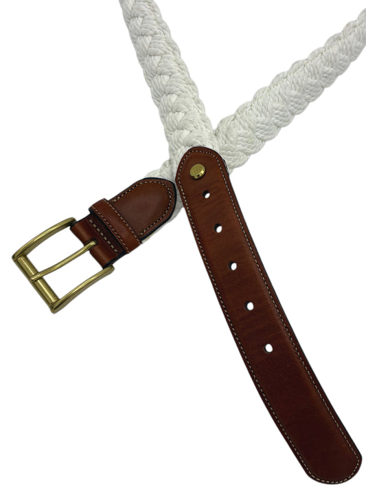 Brooks Brothers Brown Leather & White Braided Cotton Belt 38