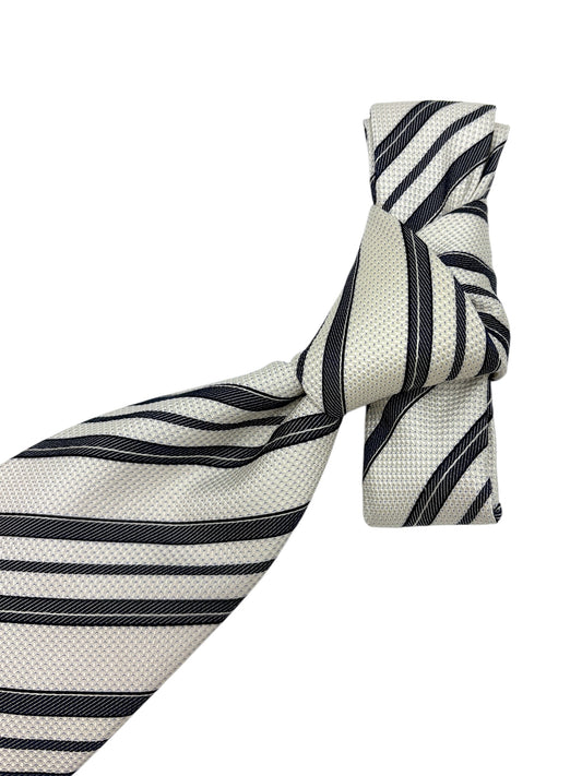 Armani Collezioni Off White & Navy Diagonal Stripe Silk Tie