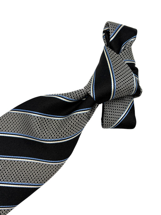 Canali Black, Blue, & White Dotted & Striped Silk Tie
