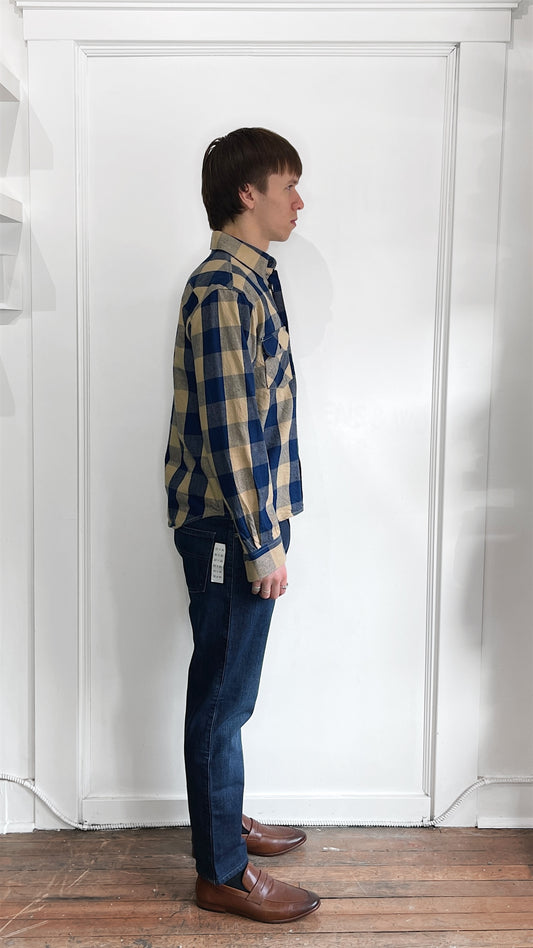 Indigofera Tan & Blue Buffalo Check Flannel Shirt Small