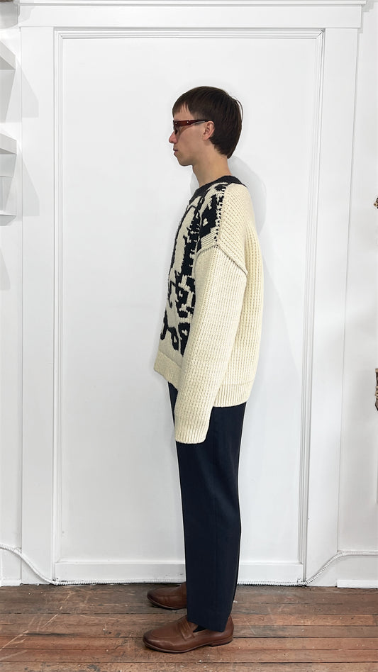 Bottega Veneta Cream & Black Heavyweight Wool Knit Sweater Extra Large