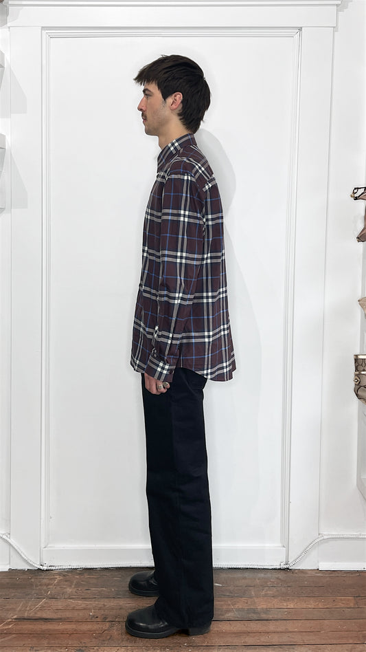 Burberry Maroon & Blue Plaid Button Up Shirt Large