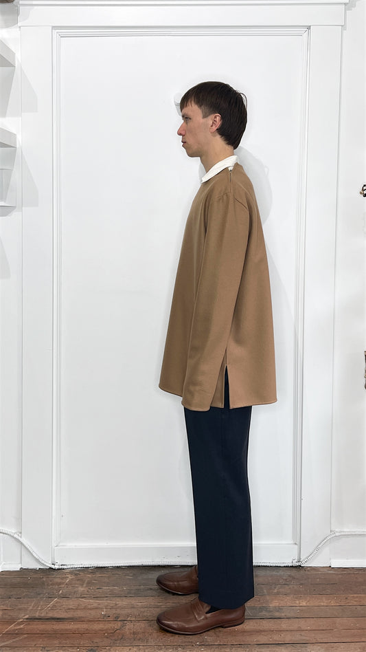 Jil Sander Camel Flannel Wool Zip Shoulder Sweater 46