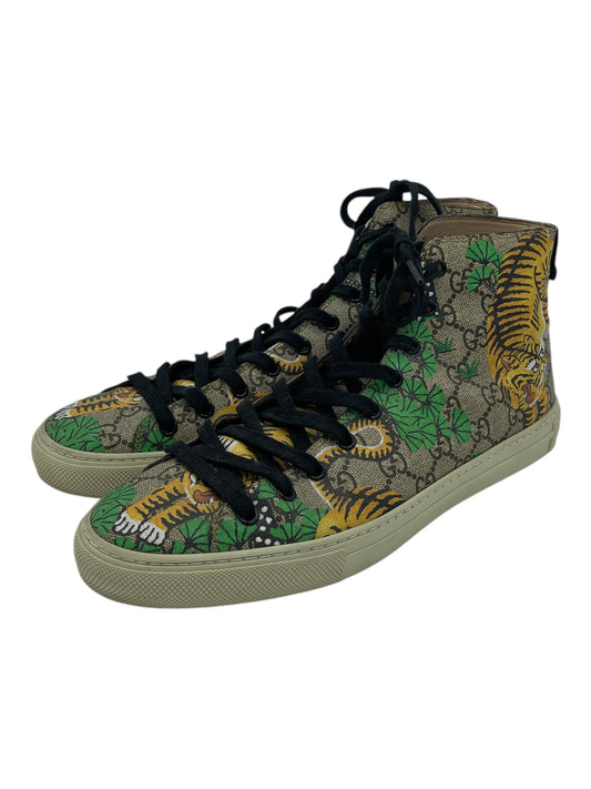 Gucci Tan, Green & Orange Monogram Tiger Print Coated Canvas High Top Sneakers 8 M / 9.5 W