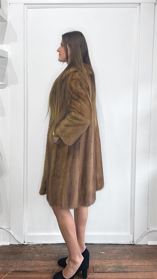 Unbranded Caramel Brown Mink Fur Overcoat Extra Small - XS