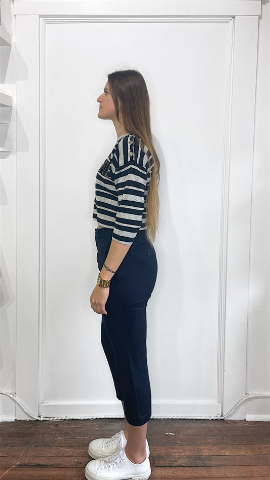 Comme Des Garcons Navy & White Pinstriped Wool Cuffed Culotte Pants Small