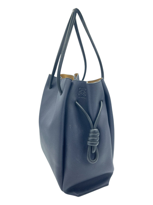Loewe Navy Blue Pebbled Leather Flamenco Knot Tote Bag