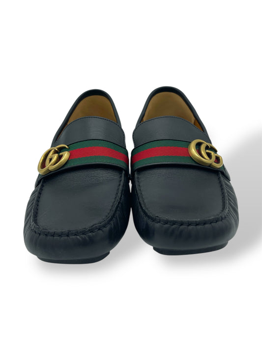 Gucci Black Leather GG Logo Driving Loafers 8.5 M / 10 W
