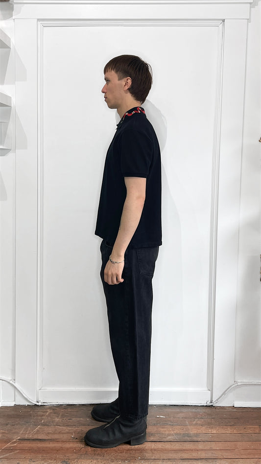 Gucci Black Cotton Pique Snake Collar Polo Shirt Large