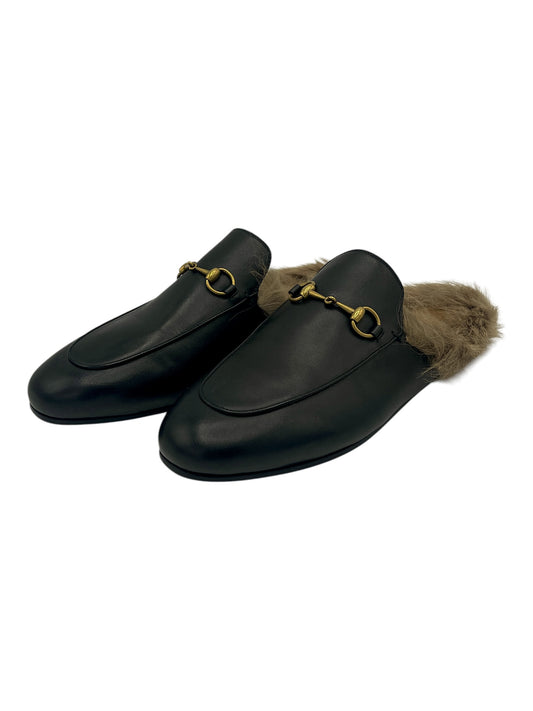 Gucci Black Leather Horsebit Fur Slippers 9 M / 10.5 W