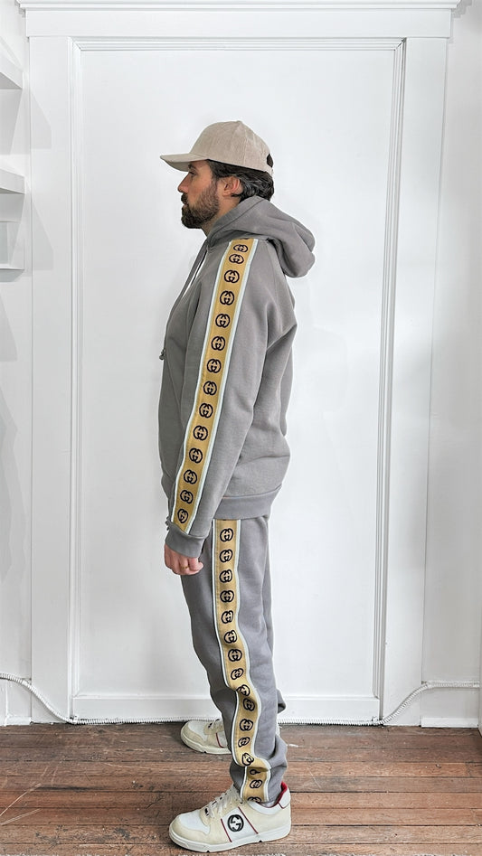 Gucci Grey & Khaki French Terry Tape Logo Sweatpants XXL