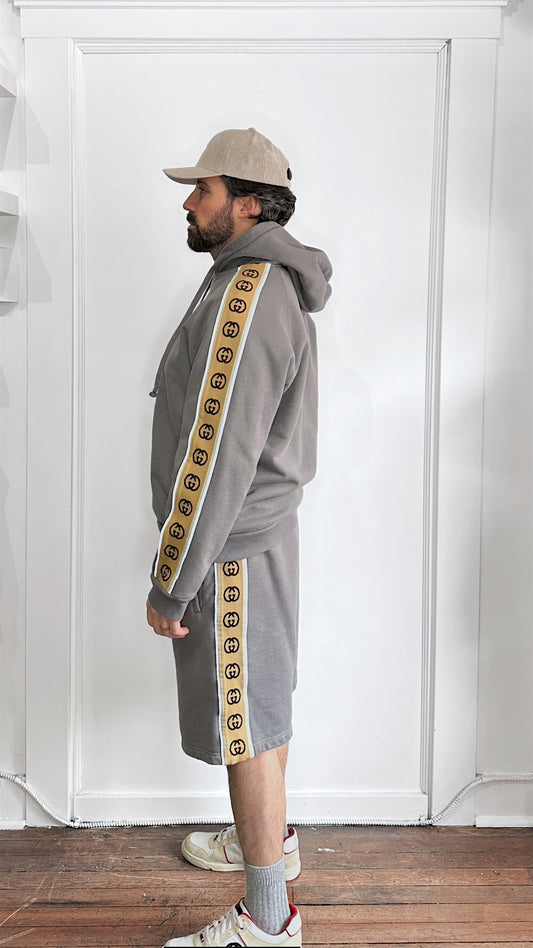 Gucci Grey & Khaki French Terry Tape Logo Sweat Shorts Extra Large