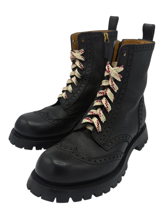 Gucci Black Grained Leather Brogue Side Zip Boots 6 M / 7.5 W