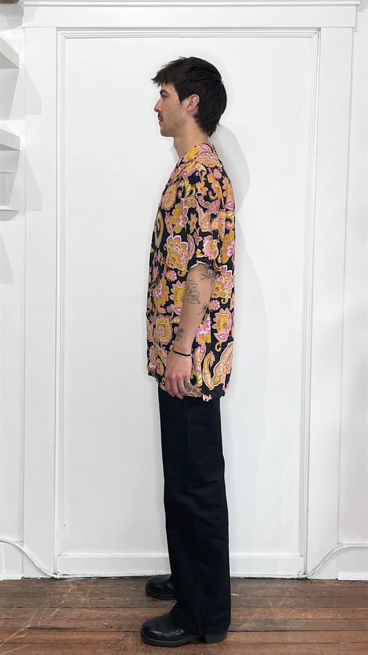 Gucci Black, Pink, & Yellow Floral Linen SS Button Up 44