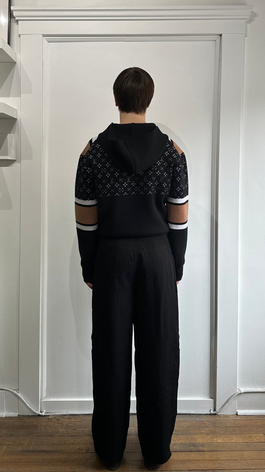 Louis Vuitton Black, Brown, & White Monogram Jacquard Wool Blend Track Hoodie Medium - M