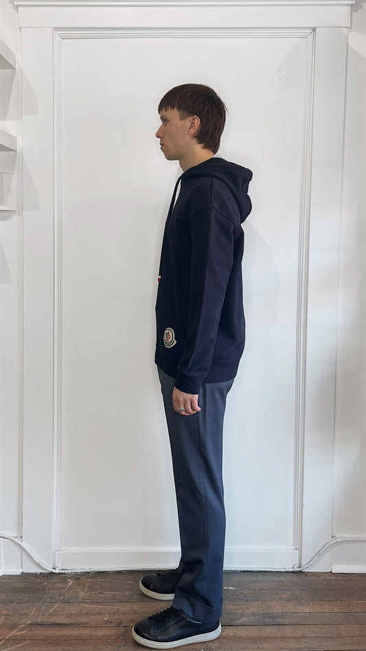 Moncler Navy Blue Cotton Patch Logo Hoodie Large