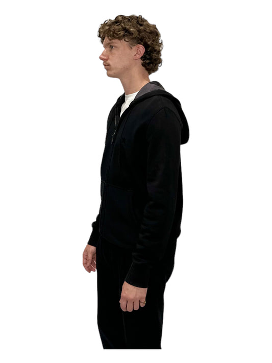 Burberry Black Cotton Zip Up Hoodie With Patterned Hood