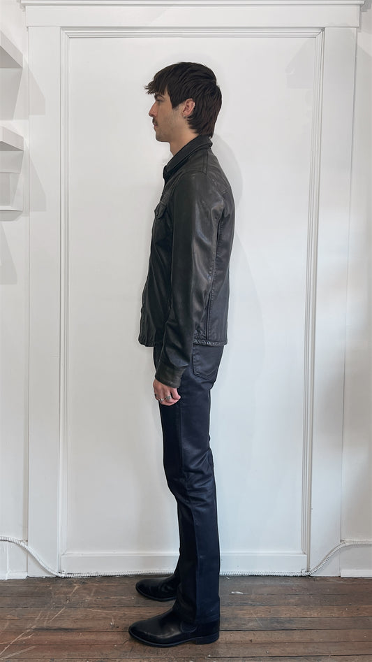 All Saints Charcoal Leather Collared Jacket Small