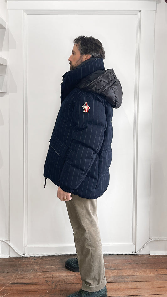 Moncler Grenoble Navy Blue Pinstriped Wool Down Gressan Jacket Extra Large