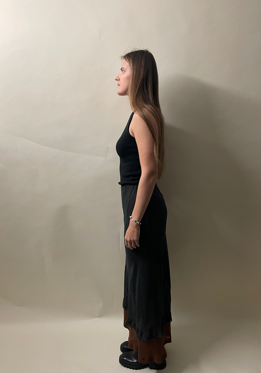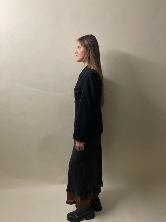 Comme Des Garcons Dark Grey & Brown Layered Polyester Midi Skirt Medium - M