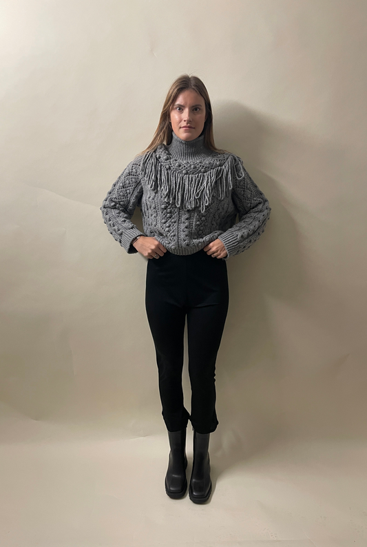 S.N.S. Herning Slate Blue Wool Fisherman Crewneck Sweater Small - S