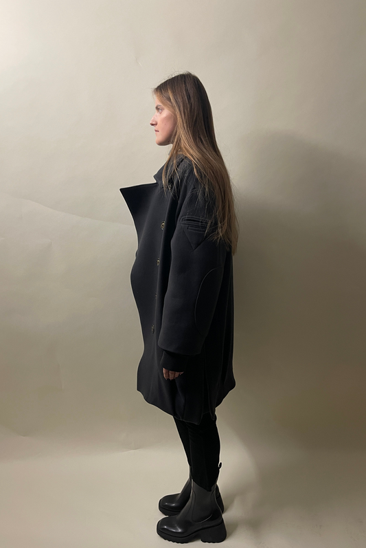 Stella McCartney Dark Grey Wool Oversized Side Zip DB Overcoat 44