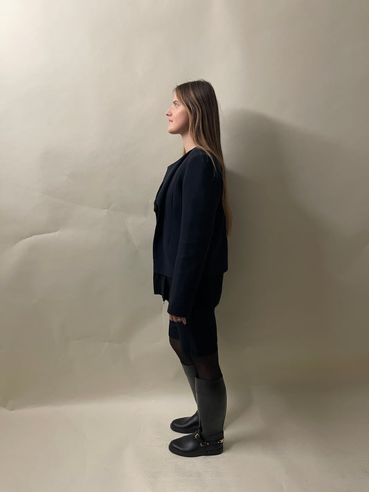 Marni Navy Blue Wool Blend Layered Collarless Jacket 44