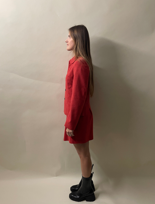 Comme Des Garcons Red Wool Blend Jacket & Skirt Dress Small - S