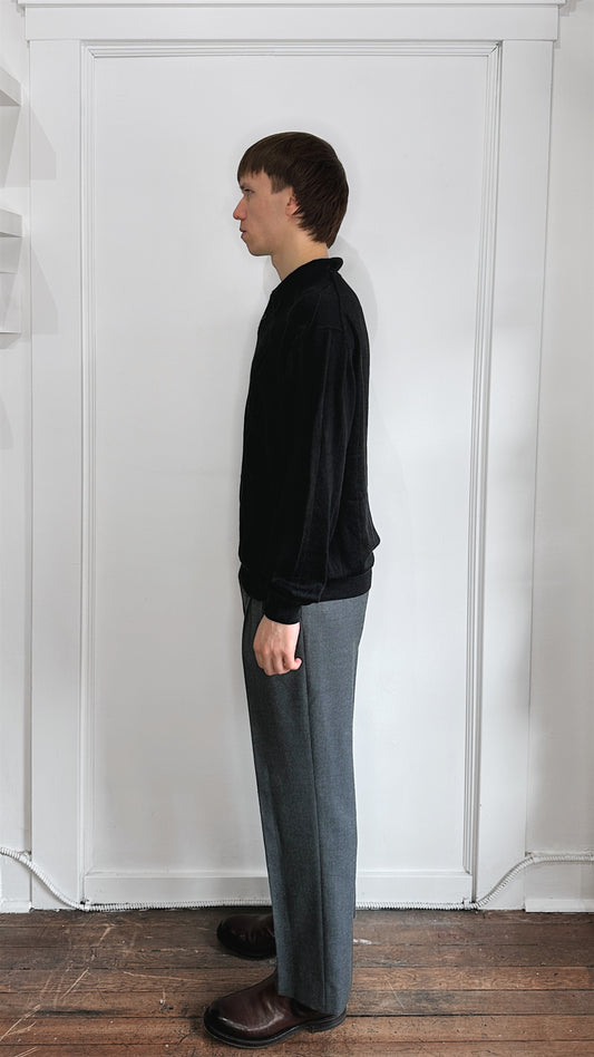 Tulliano Black Tonal Argyle Pattern Knit Polo Sweater Extra Large
