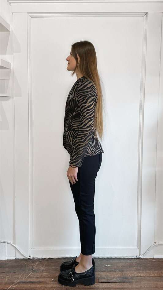 The Kooples Metallic Bronze Tiger Stripe Blazer with Leather Lapel 36