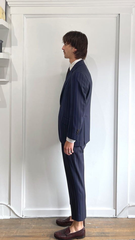 Brunello Cucinelli Navy Chalkstripe Wool Suit IT46/36
