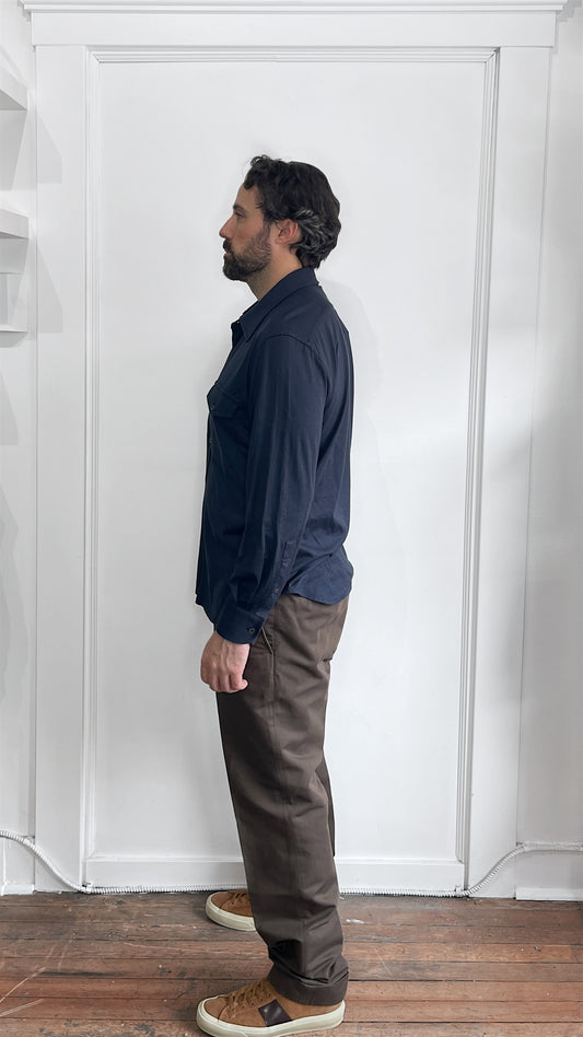 Tom Ford Slate Blue Silk Cotton Blend Two Pocket Button Up Shirt 44