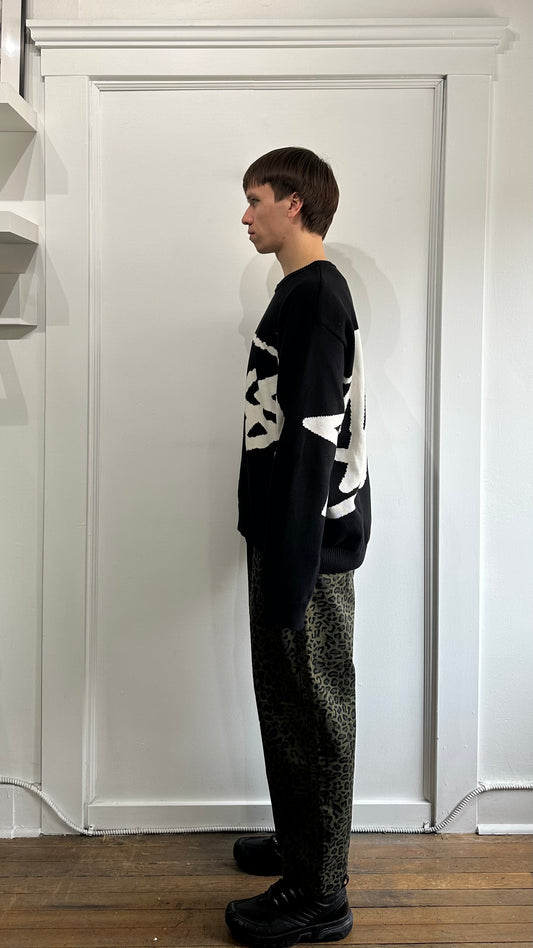 Stussy Black & White Giant Logo Knit Crewneck Sweater Extra Large - XL