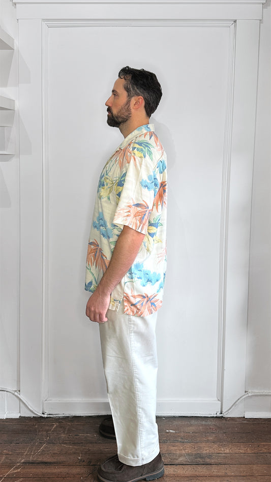 Tommy Bahama Cream & Multicolour Floral Silk Camp Shirt Large