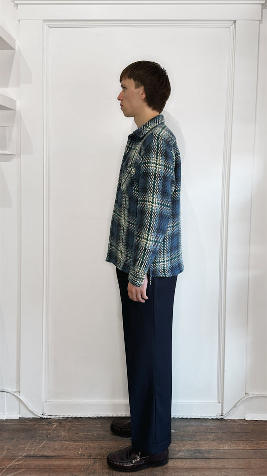 Wax London Blue, Green, & White Woven Cotton Overshirt Large