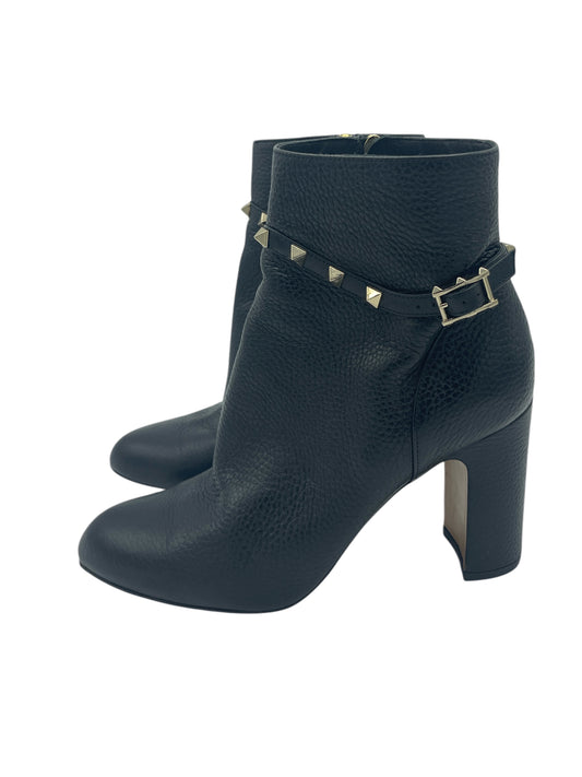 Valentino Black Pebbled Leather Rockstud Heeled Sandal 8 M / 9.5 W
