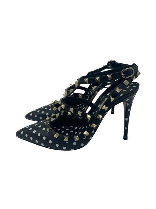 Valentino Black & White Polka Dot T Strap Rockstud Heels