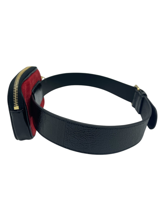 Gucci Black & Red Grained Patent Leather & Suede Belt Bag 32