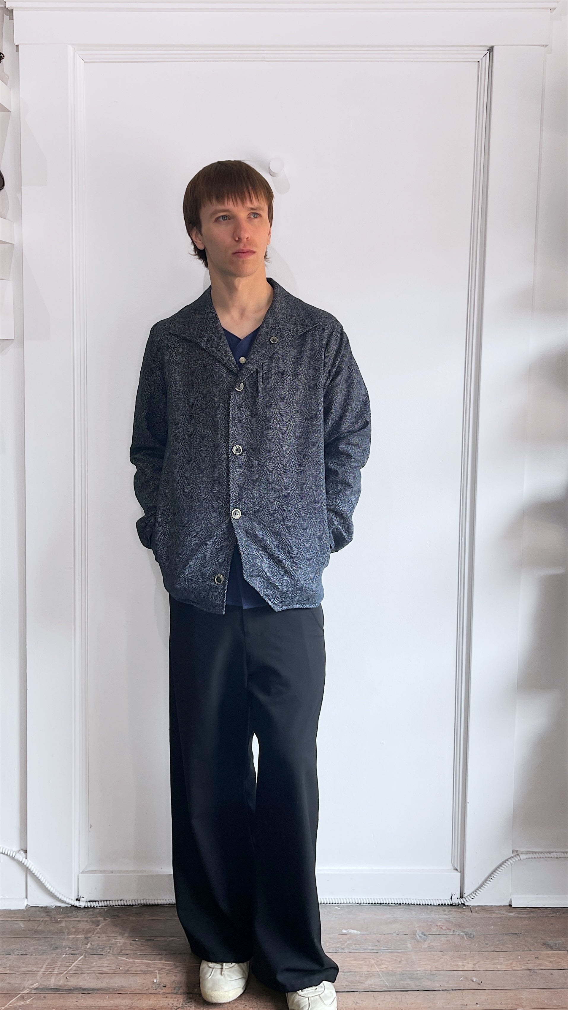 Item: 18 Waits Indigo & White Sashiko-esque Pattern Cotton Jacket Small