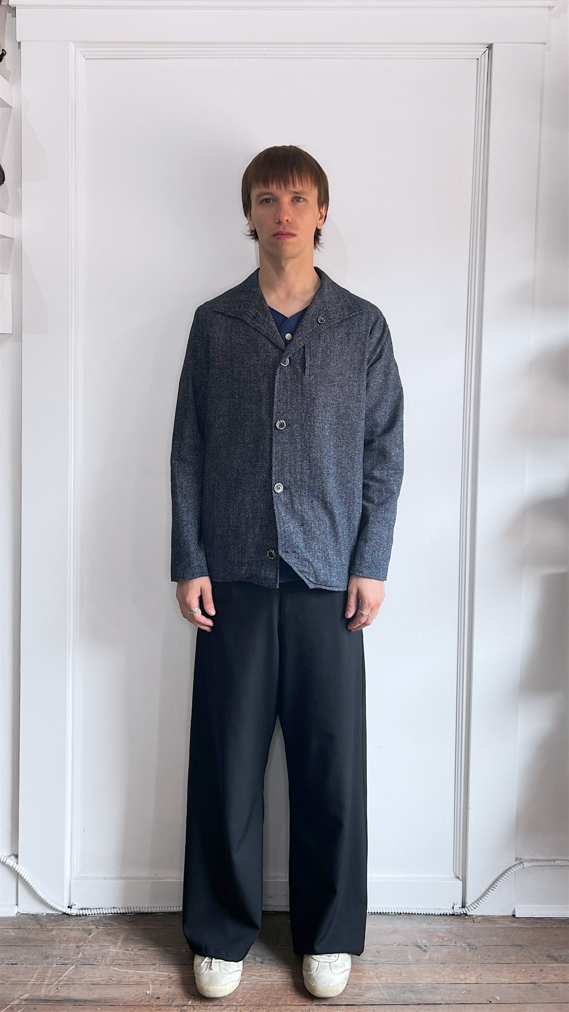 18 Waits Indigo & White Sashiko-esque Pattern Jacket Small