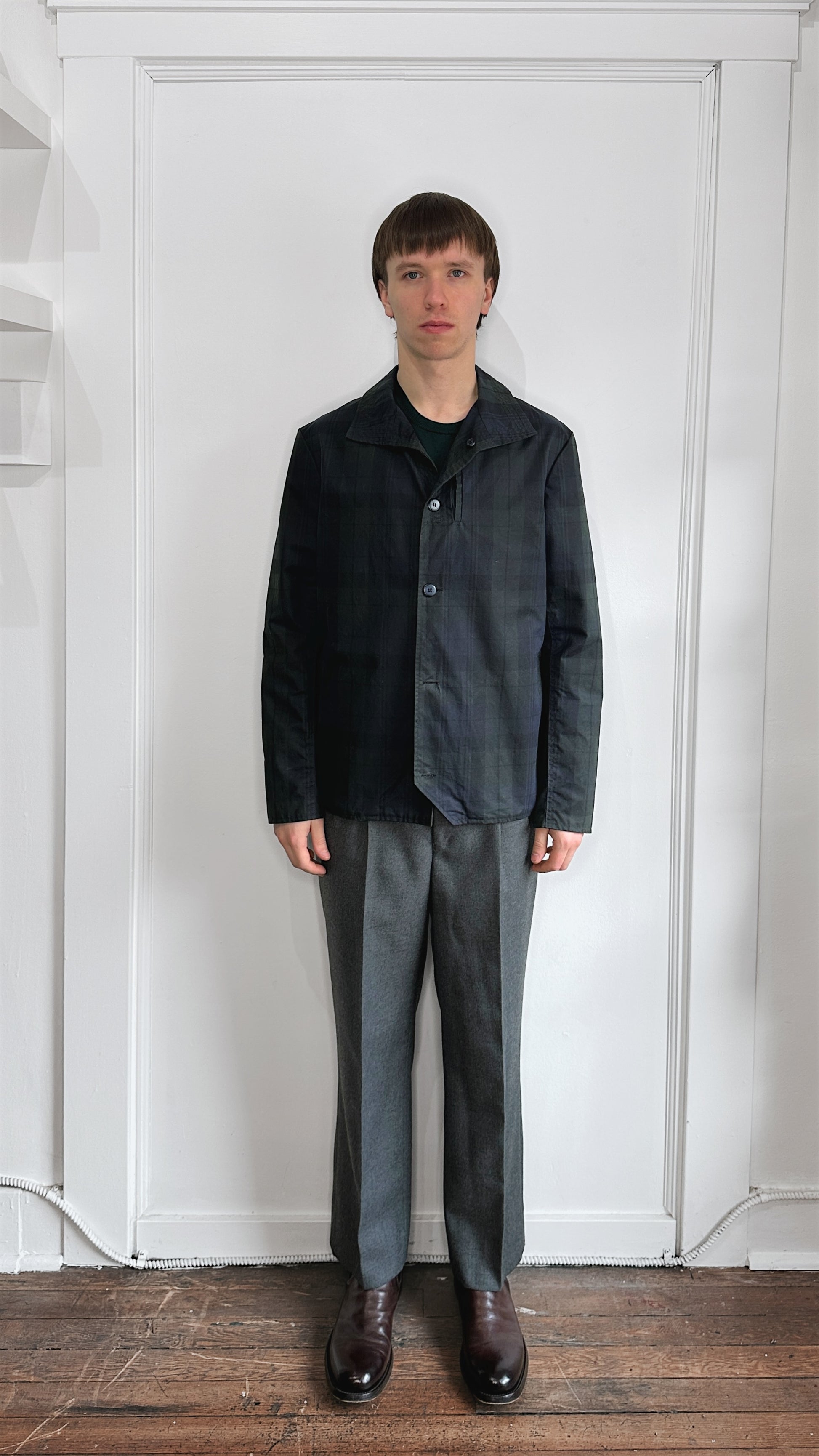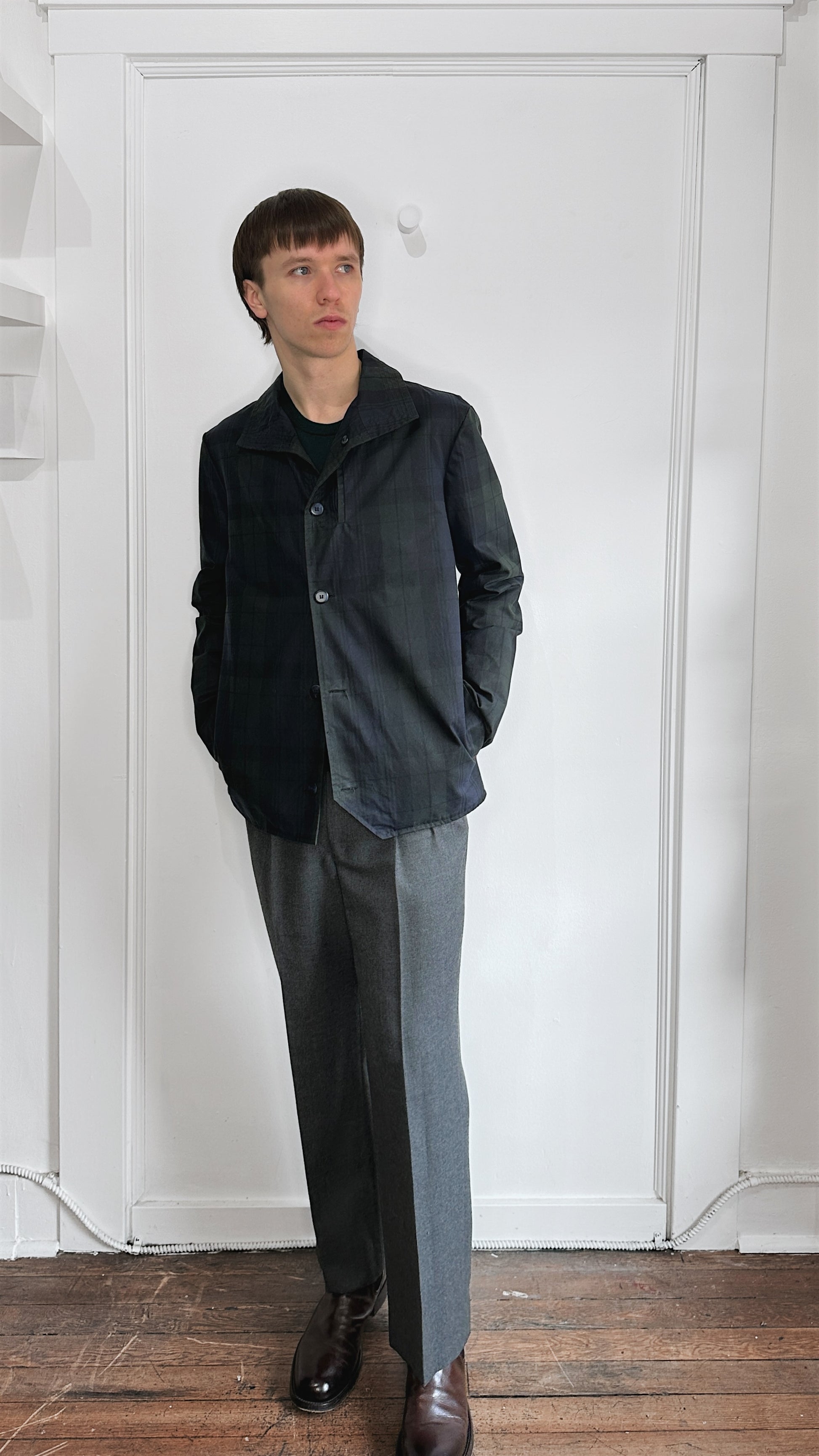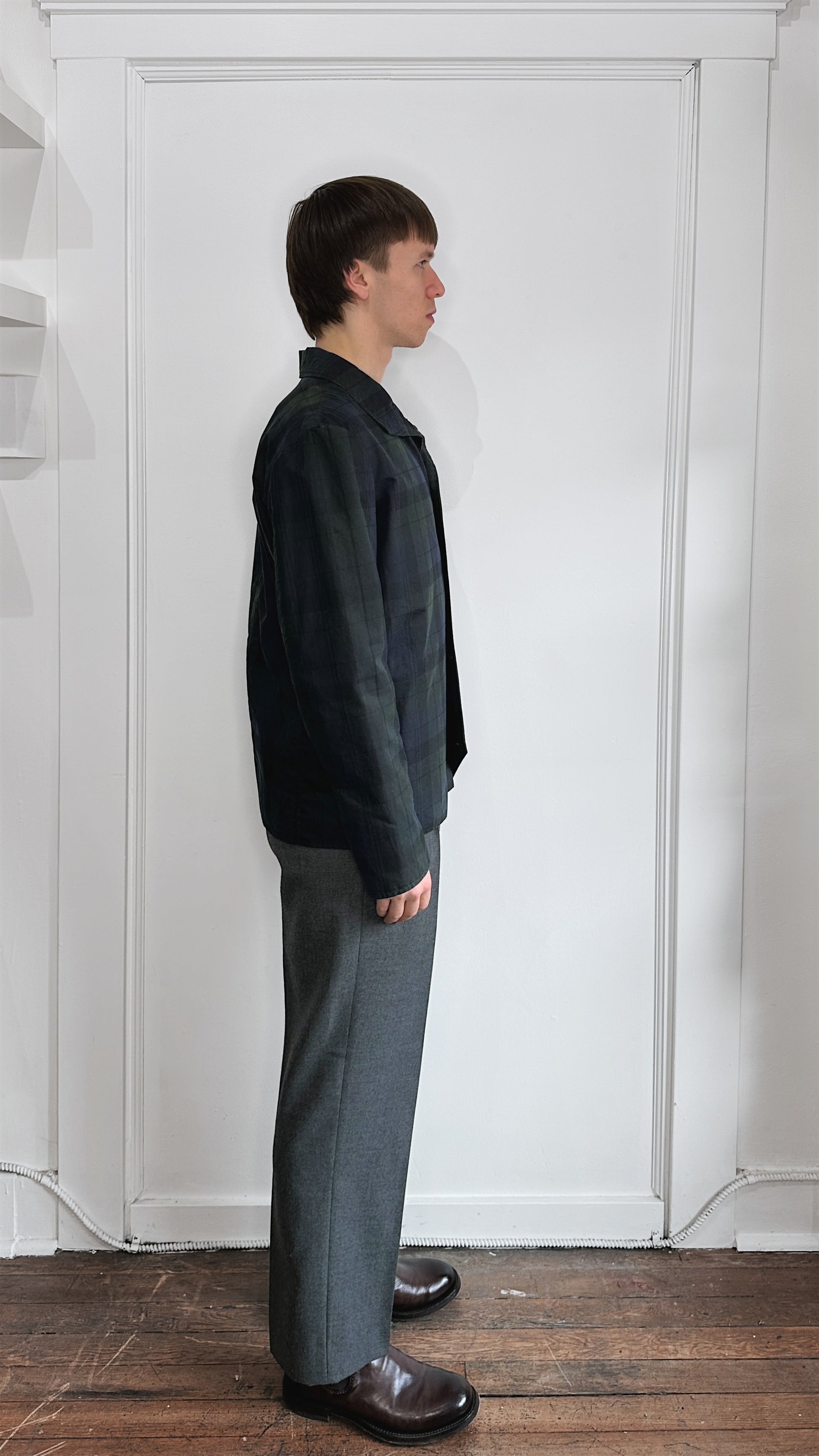 Item: 18 Waits Navy & Green Plaid Waxed Canvas Button Up Insulated Jacket Medium