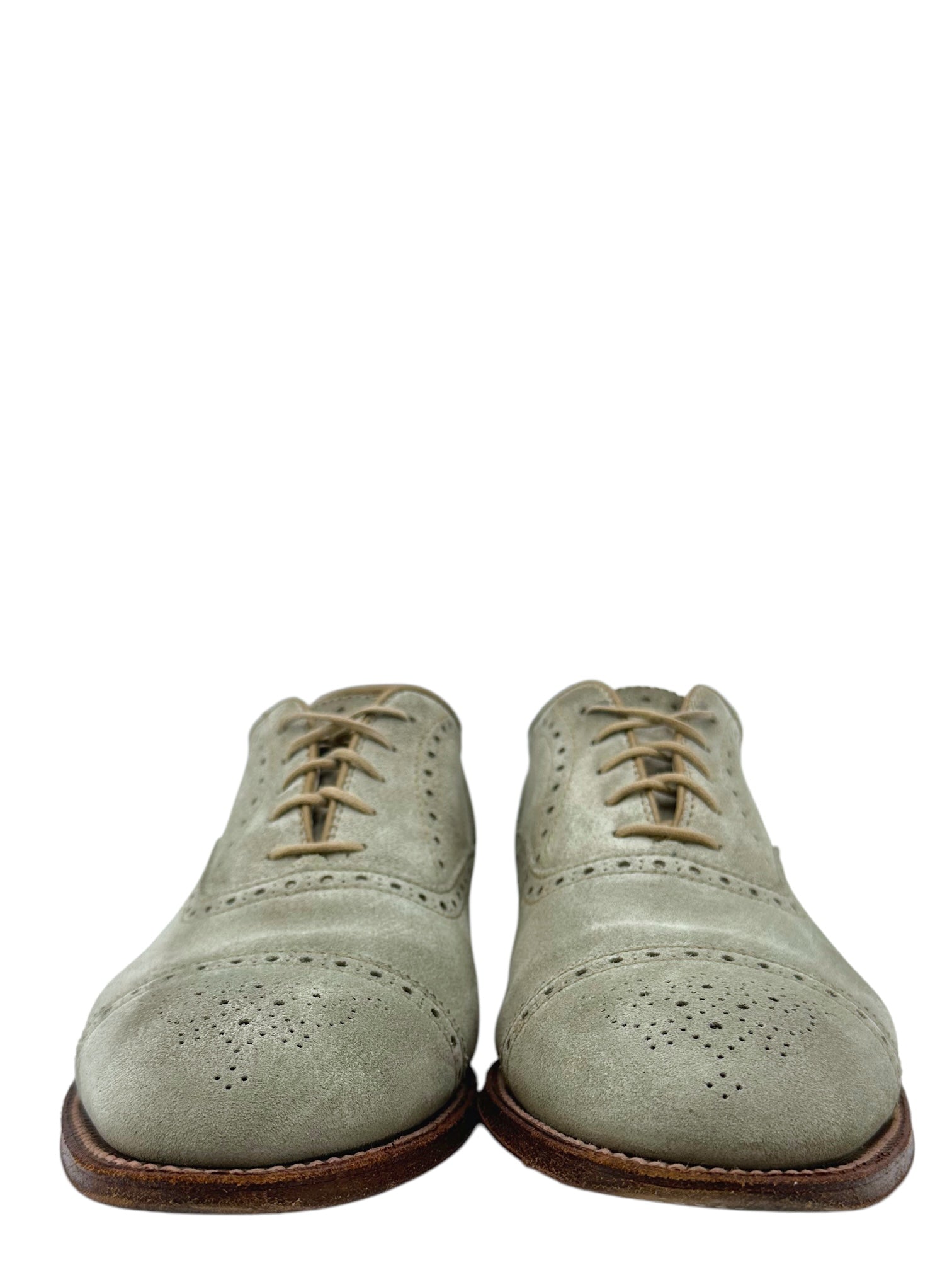 Alden x Brooks Brothers Light Teal Suede Brogue Cap Toe Oxford Dress Shoes 10 M / 11.5 W