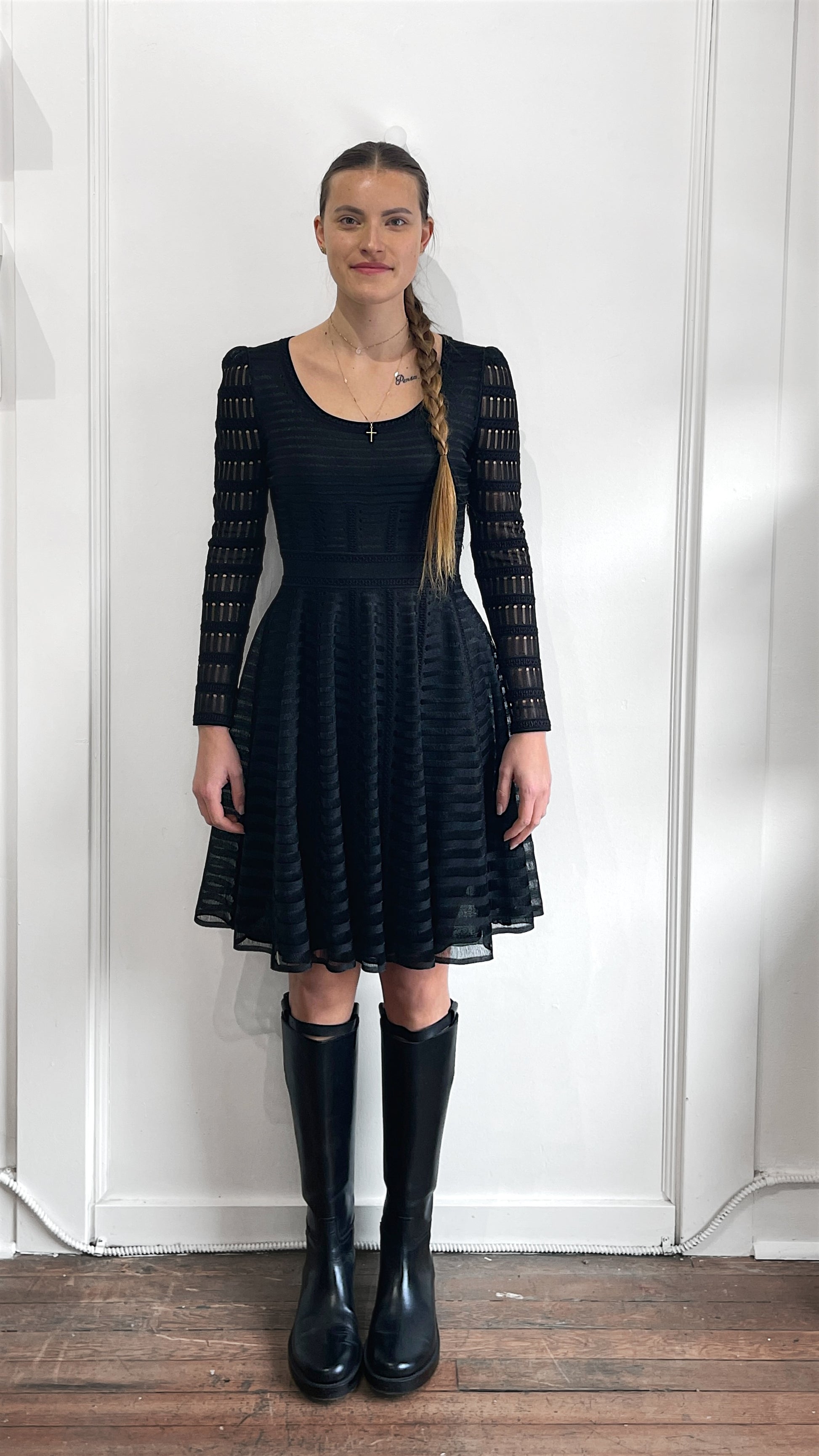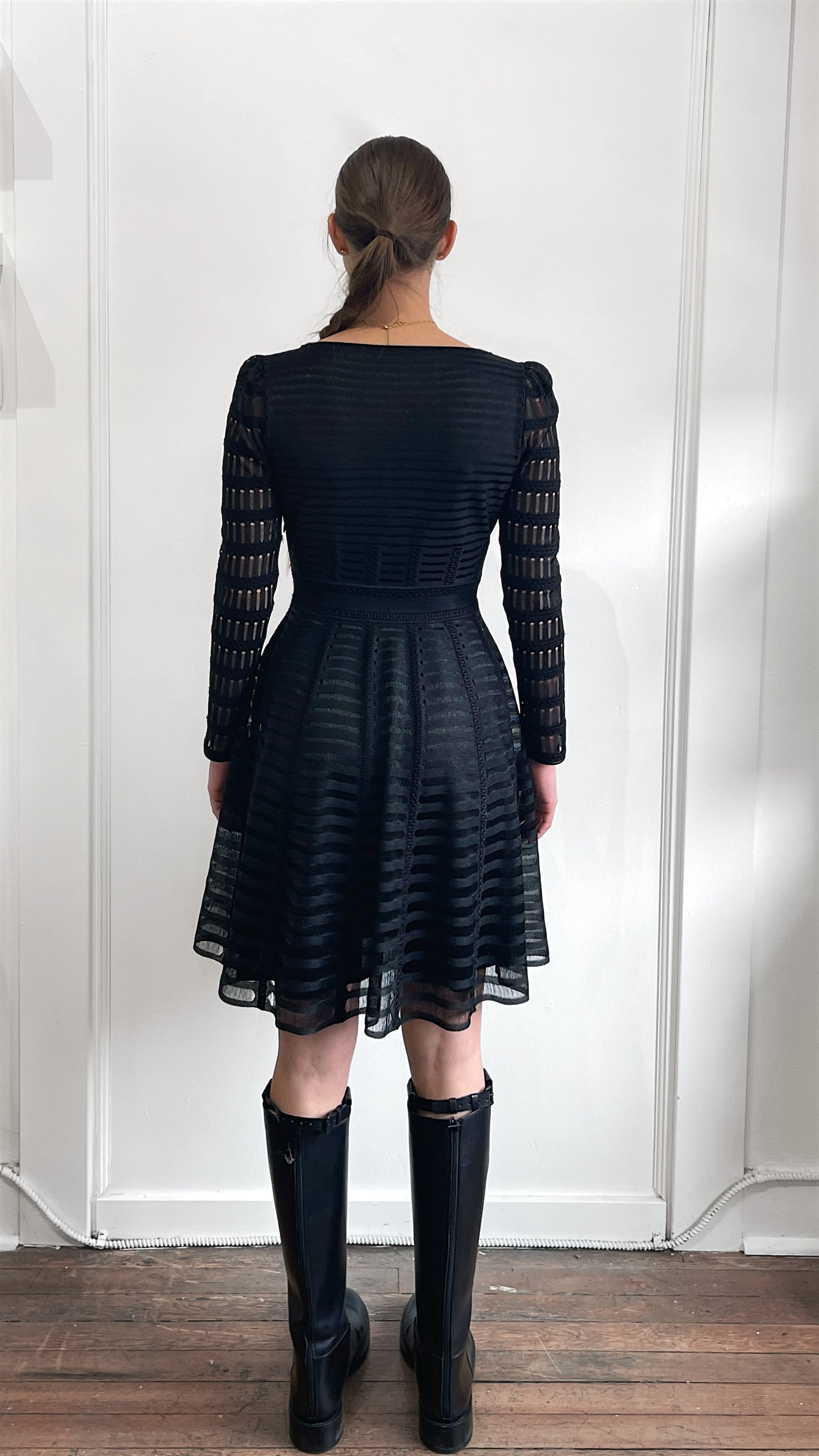 Item: Alexander McQueen Black Mesh Crewneck Long Sleeve Dress Medium