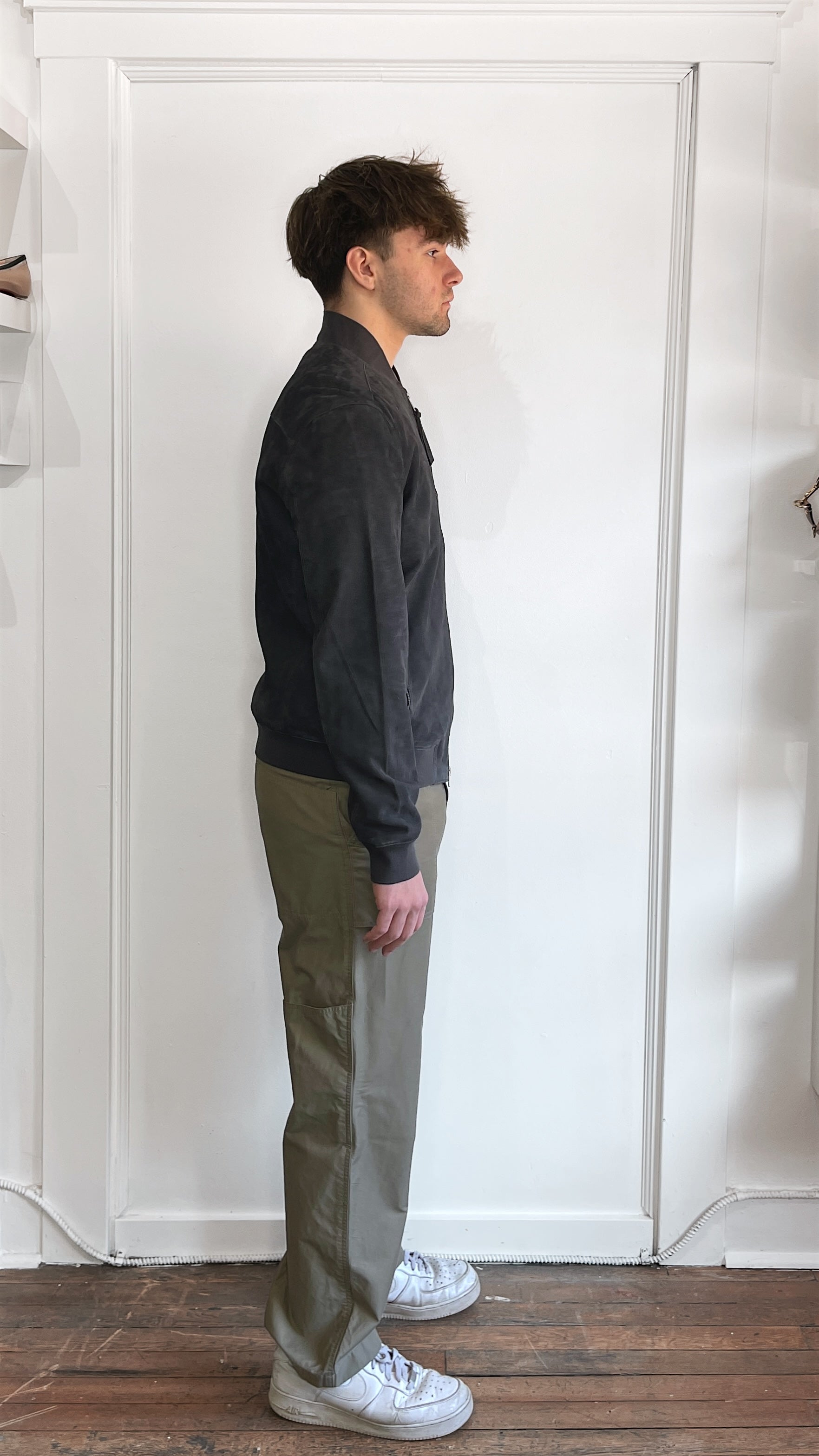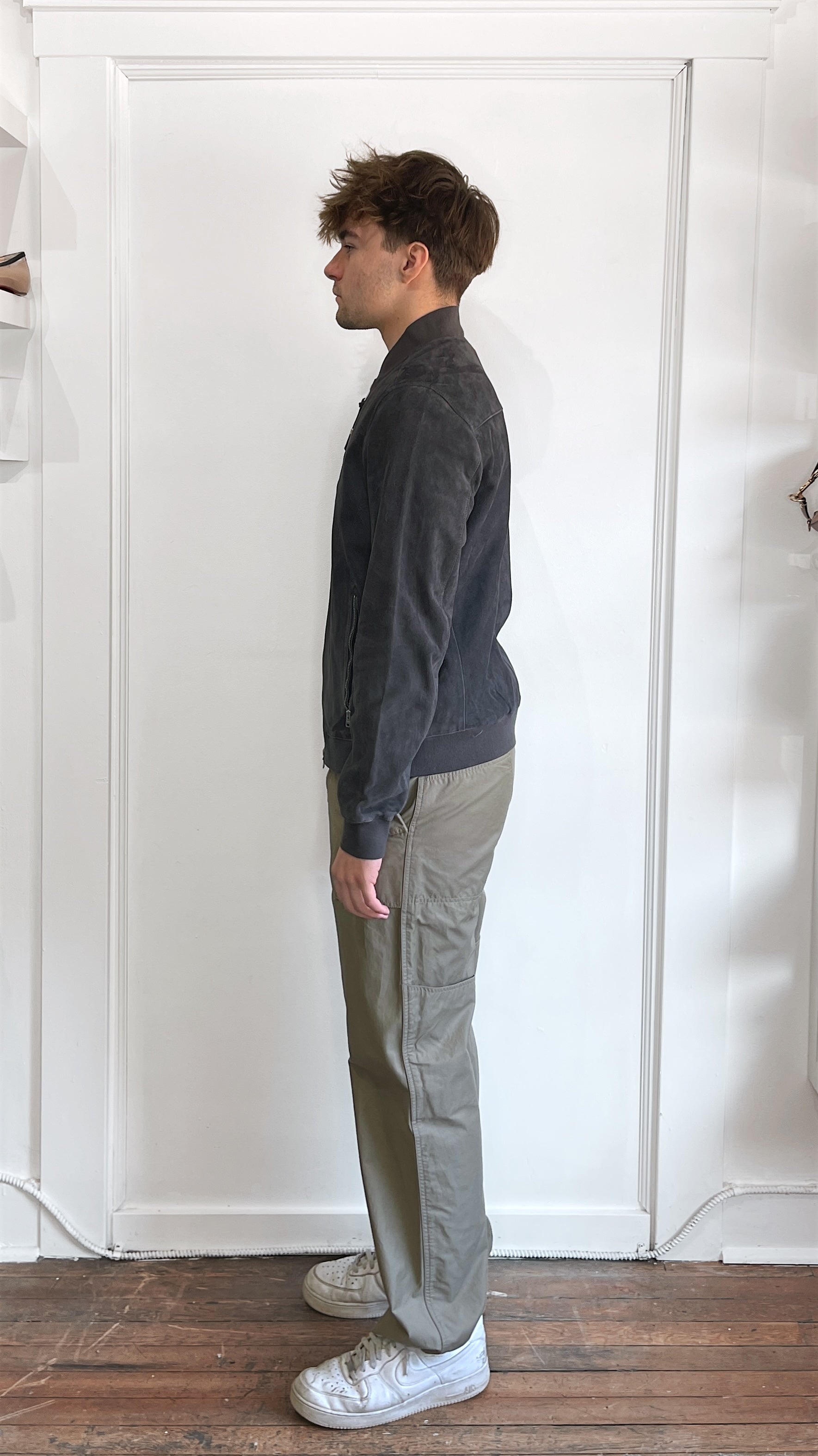 Item: All Saints Grey Suede Kemble Bomber Jacket Extra Large