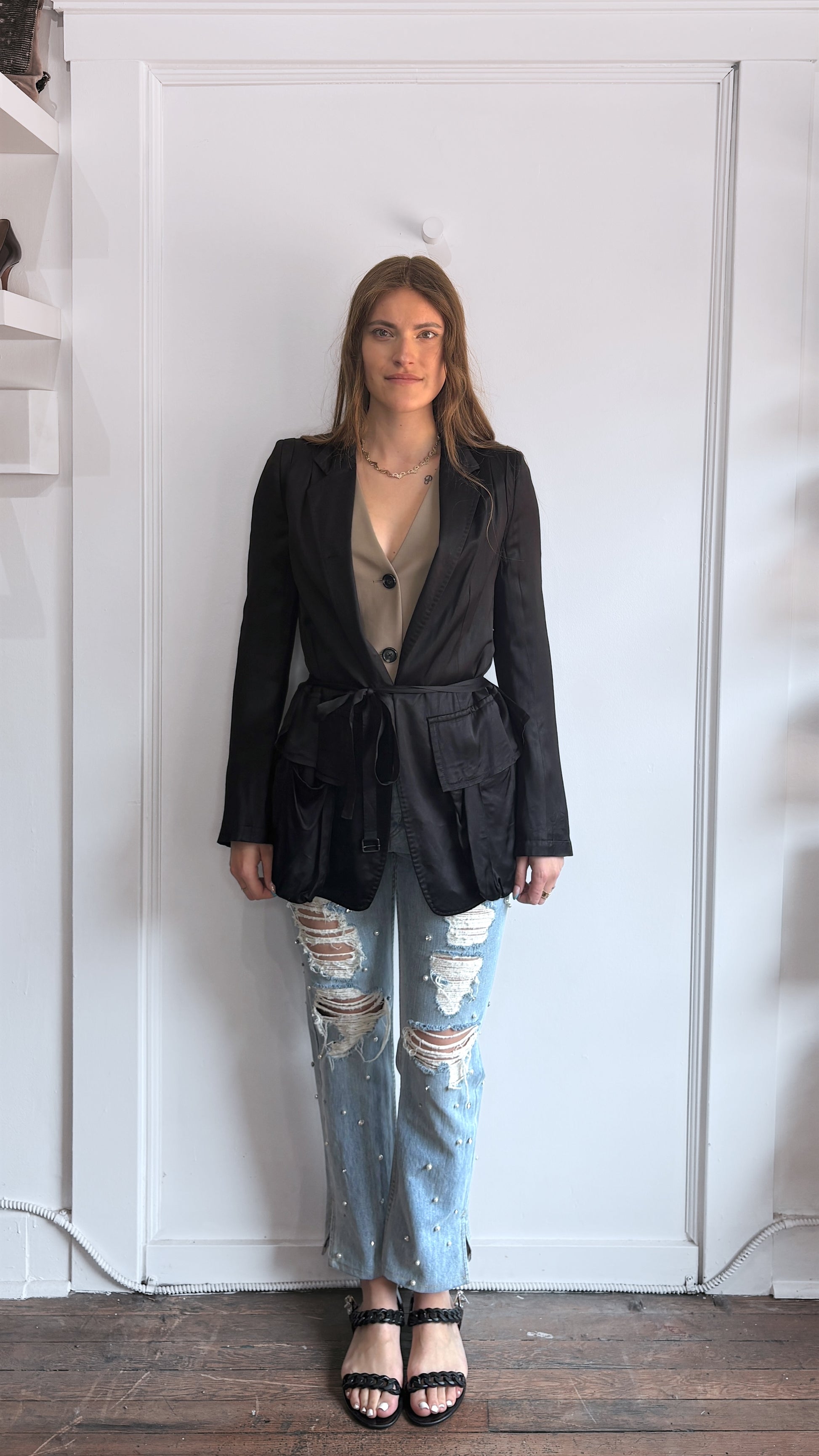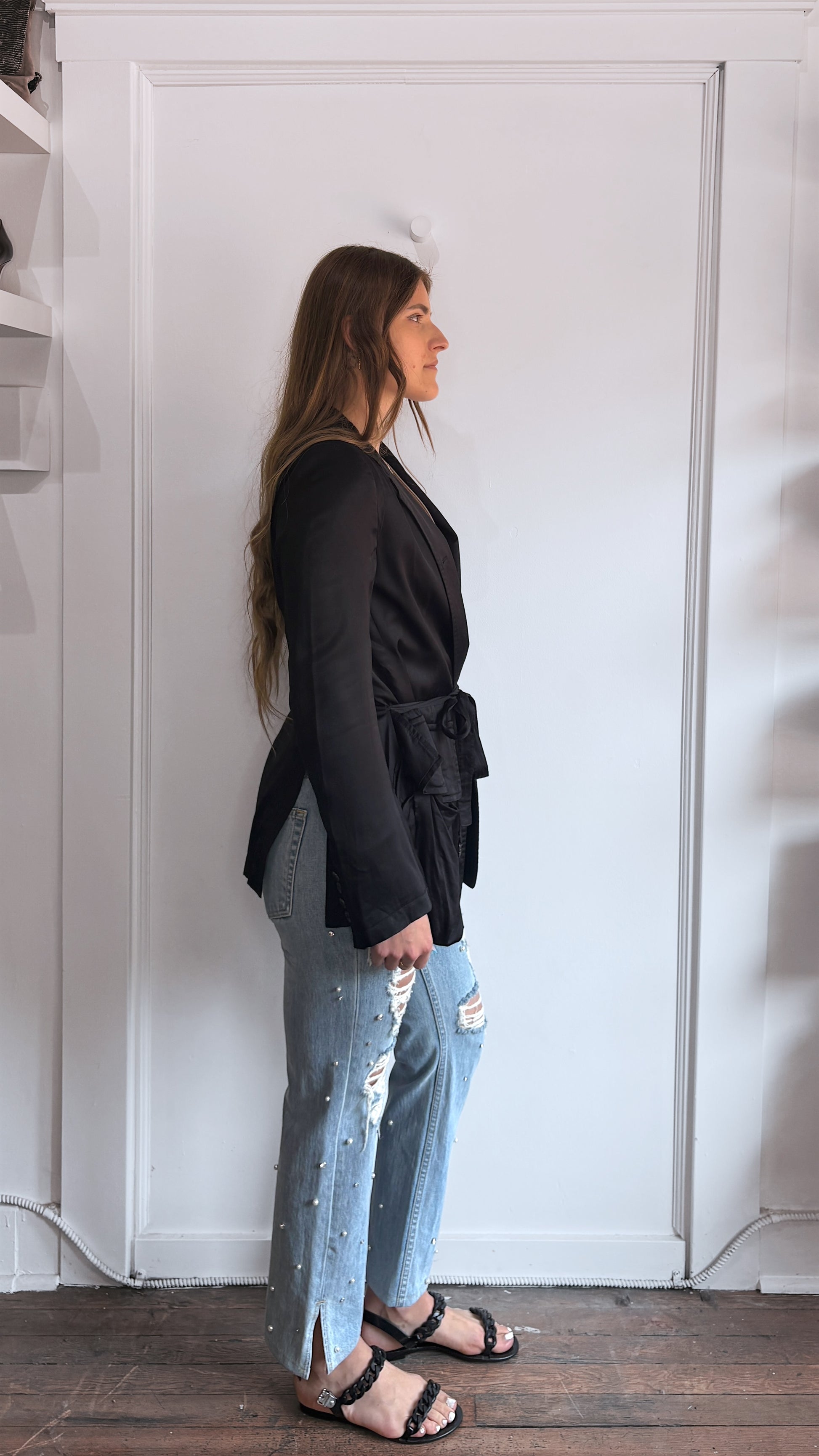 Item: Ann Demeulemeester Black Rayon Belted Blazer 38