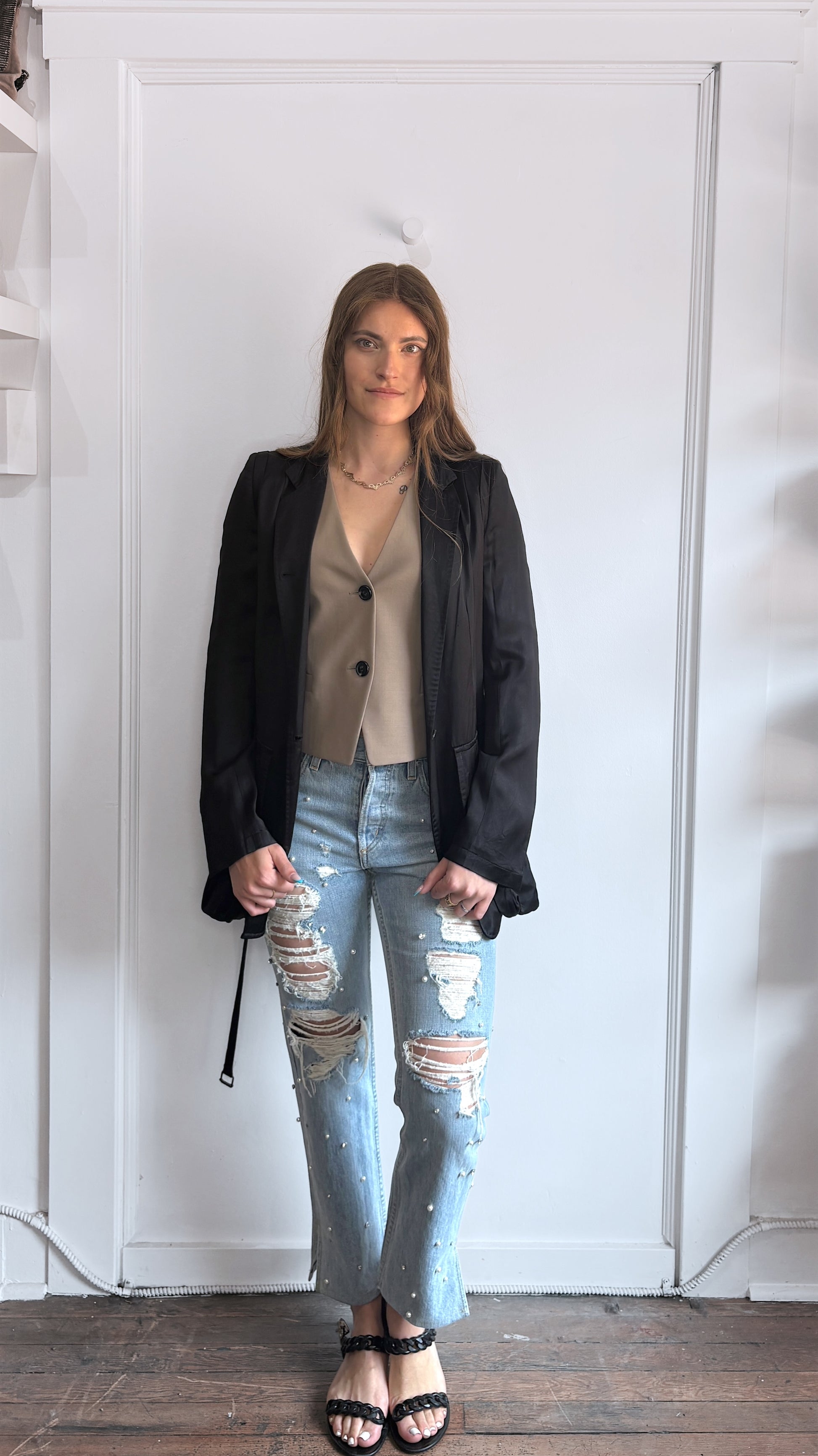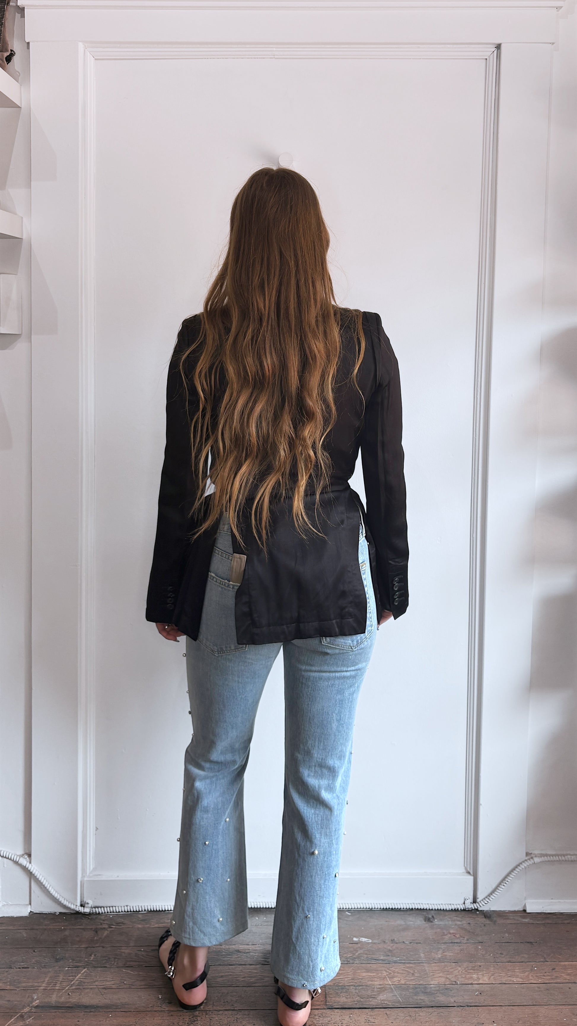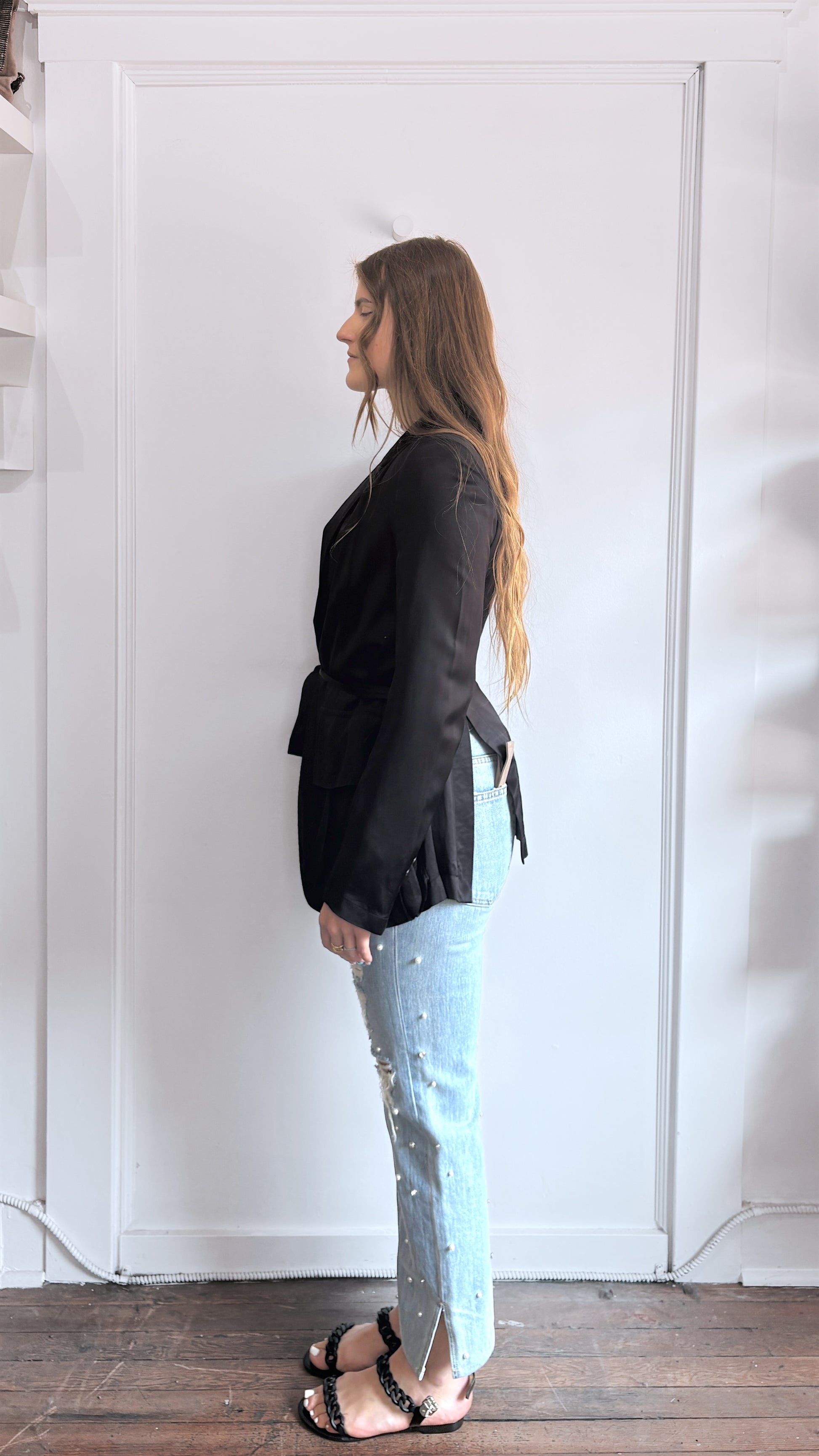 Ann Demeulemeester Black Rayon Belted Blazer 38