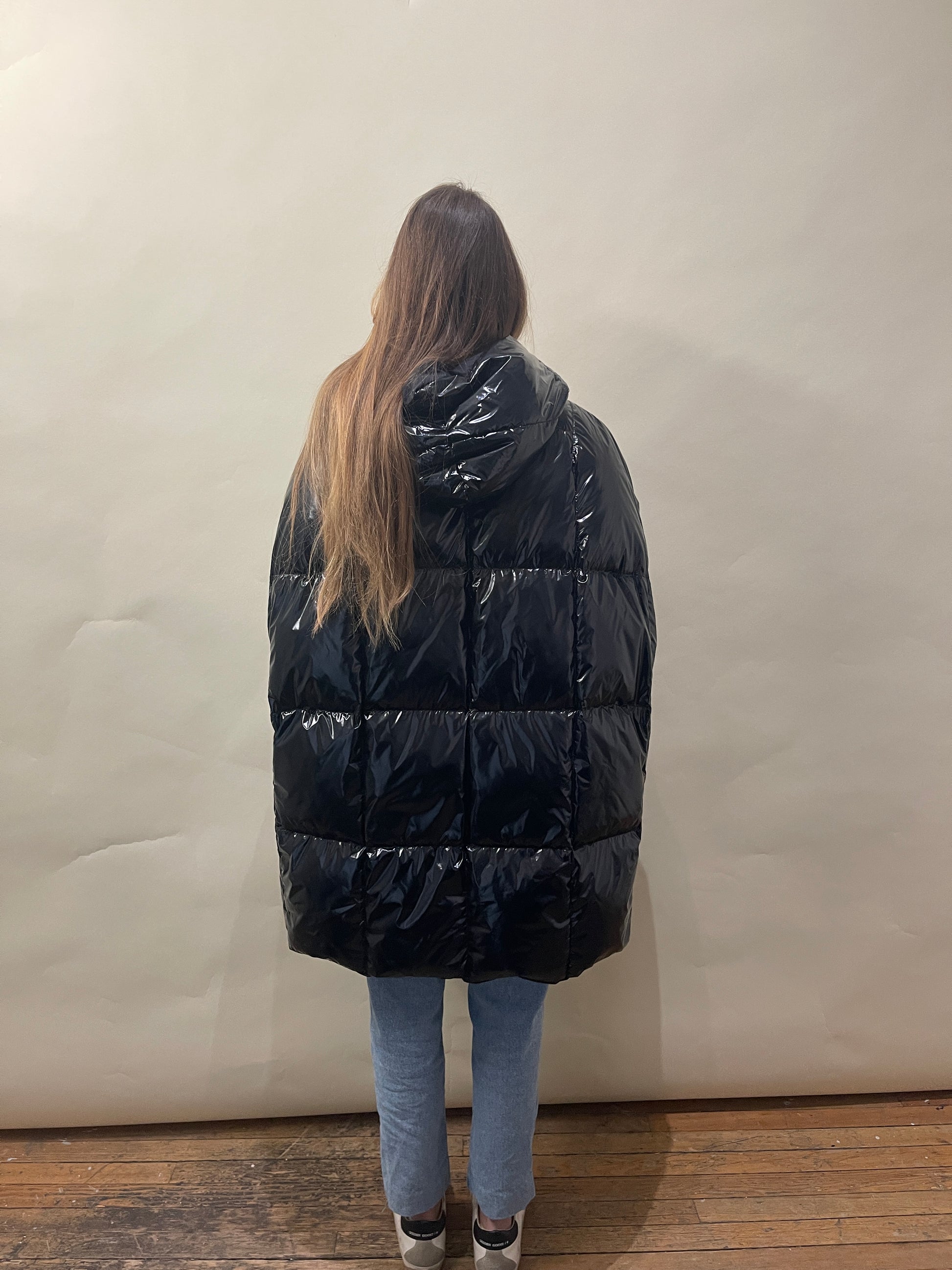 Annette Görtz Black Shiny Hooded Puffer Poncho Medium - M