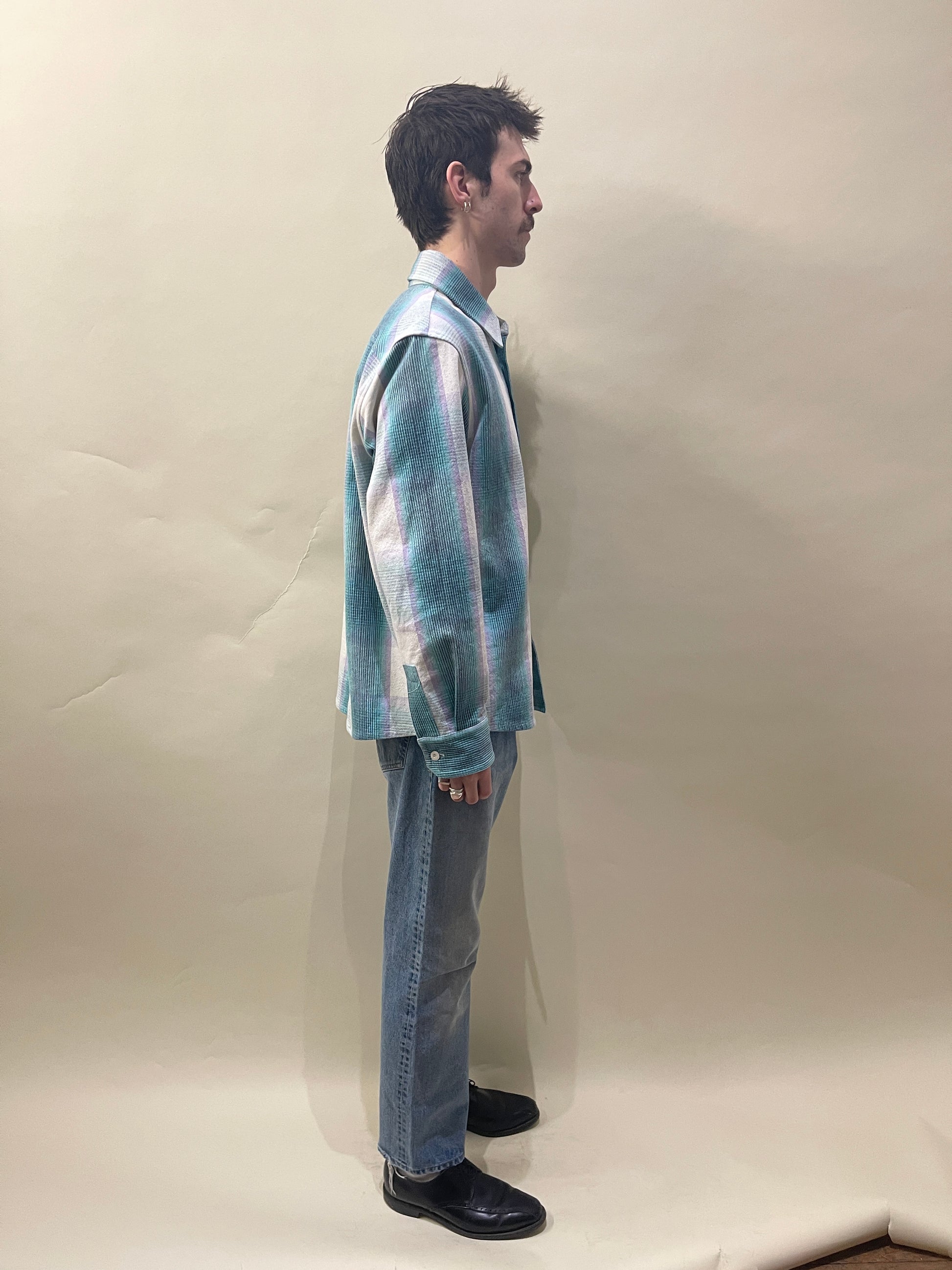 A.P.C. White, Lilac, Teal Cotton Poly Blend Basile Check Overshirt Medium - Made in Tunisia